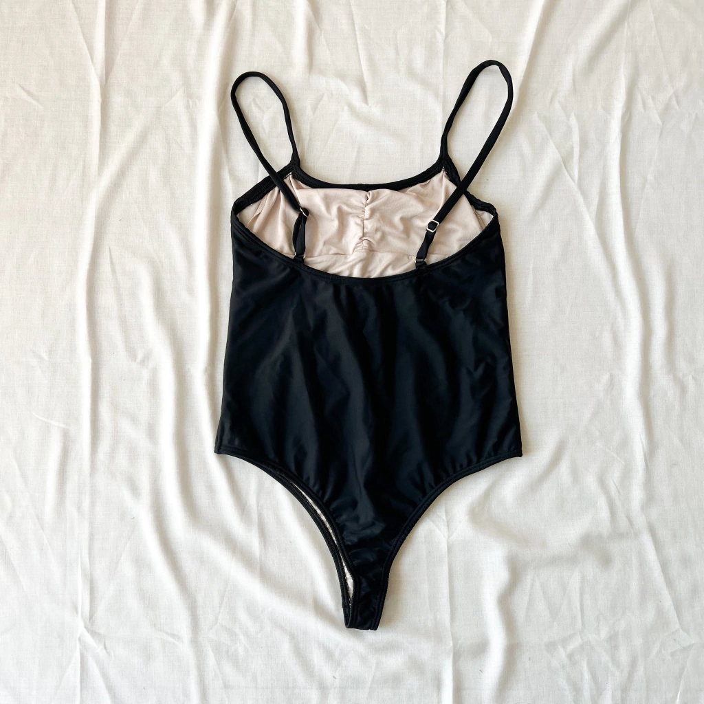 Enteriza media cola con frunce en el corpiño y con breteles rectos regulables