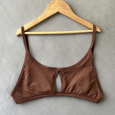 Top con abertura en el centro, breteles regulables y lazo para atar y regular la esplada.