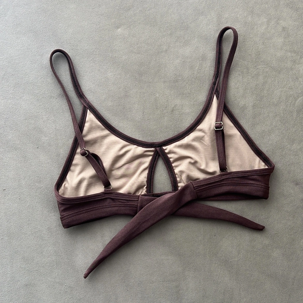 Top con abertura en el centro, breteles regulables y lazo para atar y regular la esplada.