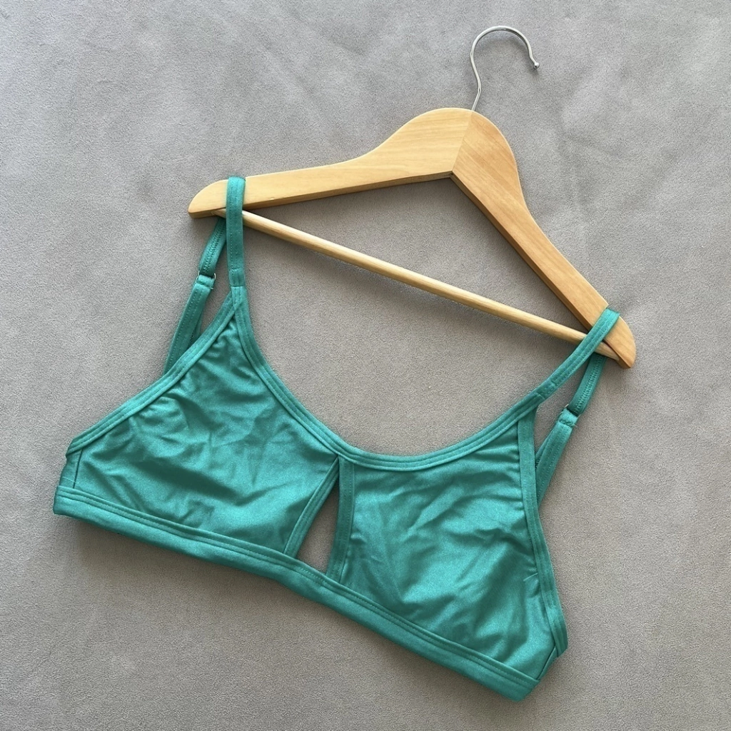 Top con abertura en el centro, breteles regulables y lazo para atar y regular la esplada.