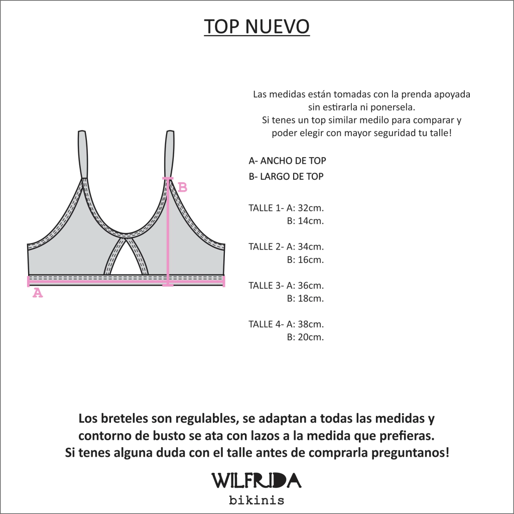Top con abertura en el centro, breteles regulables y lazo para atar y regular la esplada.