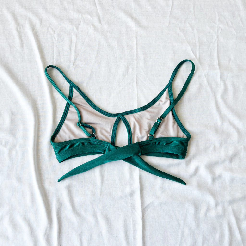Top con abertura en el centro, breteles regulables y lazo para atar y regular la esplada.