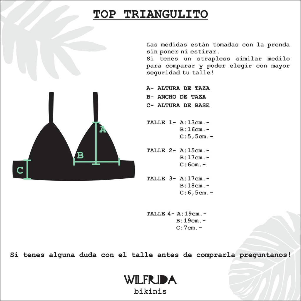 Top Triangulito con breteles regulables y tira cruzada para ajustar en la espalda.